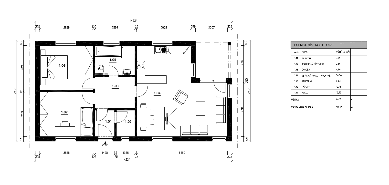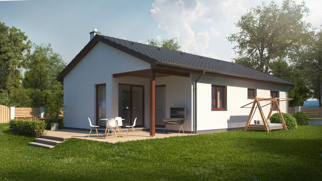 Bungalov 80 je skvělou volbou pro ty, kteří hledají útulný a praktický domov pro svou rodinu. S kompaktními rozměry a útulným designem je ideální pro páry, malé rodiny nebo jednotlivce, kteří si přejí bydlet v pohodlném prostředí. I přes svou menší velikost Bungalov 80 přináší výhody moderního bydlení. Tento dům nabízí praktickou dispozici s obývacím pokojem, kuchyní a dvěma ložnicemi, což vytváří ideální prostor pro pohodlný život. Dvě ložnice umožňují flexibilitu při uspořádání interiéru, ať už potřebujete místo pro děti, hosty nebo kancelář. Taktéž je zde perfektní prostor zastřešené terasy, takže si lze užít chvilky i v případě venkovního posezení. Dům Bungalov 80 má příjemnou atmosféru, která vám umožní cítit se doslova jako doma. I přes svou menší velikost nabízí dostatek prostoru pro vaše fungování. Tento bungalov je také ideální pro ty, kteří hledají snadnou údržbu a jednoduchý životní styl. Pokud toužíte po útulném a praktickém domě, který vám poskytne vše, co potřebujete, pak je Bungalov 80 skvělou volbou právě pro vás. Tento dům vám umožní žít pohodlně a bez starostí, a to za velmi příznivou cenu.