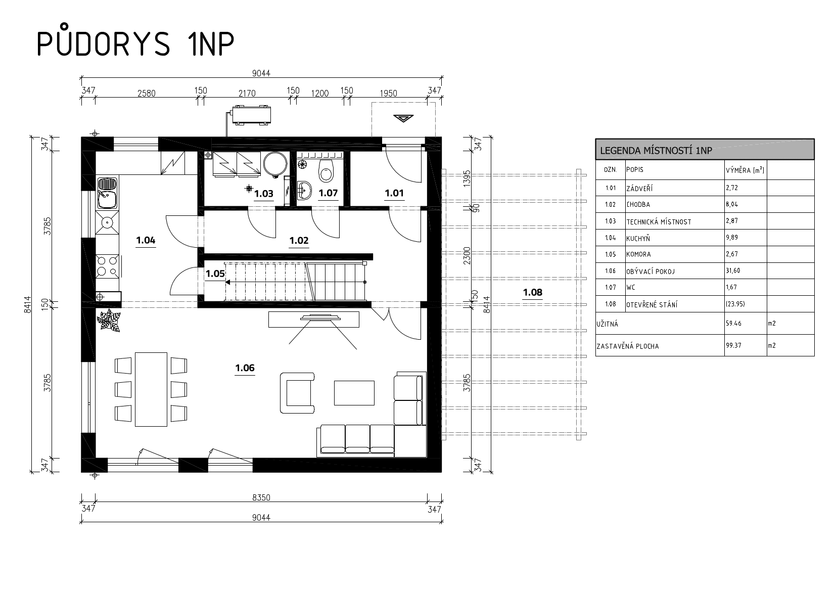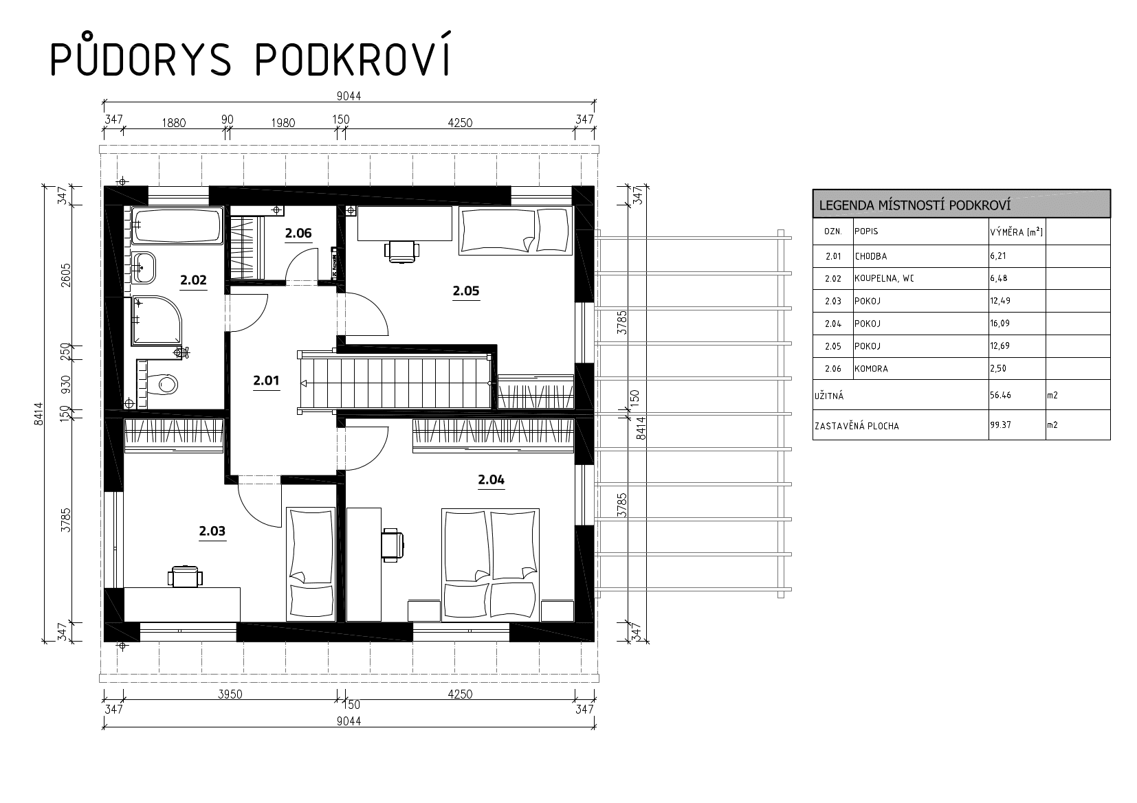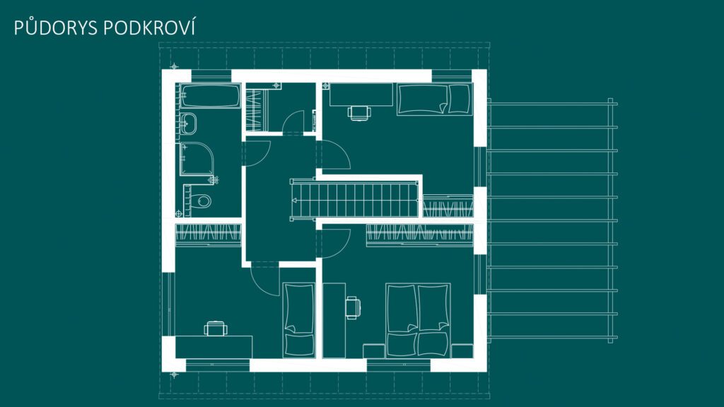 KUBIS 117 je domem, který vás okouzlí svým vnitřním prostorem a jednoduchým uspořádáním. Každý detail byl promyšlený tak, aby vám nabídl praktický a komfortní životní prostor, ve kterém neexistují zbytečné mezery. S čtvercovým půdorysem a zastavěnou plochou pod sto metrů čtverečních se tento domov dokonale hodí i na menší pozemky. Přestože na první pohled působí skromně, uvnitř vás mile překvapí více než 117 m2 obytné plochy. Jakmile vkročíte do domu, oceníte prostornou vstupní chodbu, která odděluje jednotlivé části domu. Tato chodba vás dovede do kuchyňského koutu a do vzdušného obývacího pokoje, jehož francouzská okna vás následně zavedou na terasu, kde si můžete užít venkovního posezení. Když se rozhodnete prozkoumat druhé patro, čekají vás celkem tři prostorné pokoje, technická místnost a moderně vybavená koupelna. KUBIS 117 je dům, který propojuje jednoduchost s praktičností, to vše je doplněno nezastřešenou pergolou, která je součástí domu.