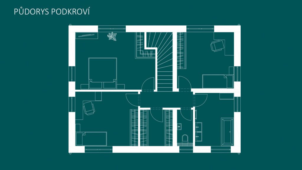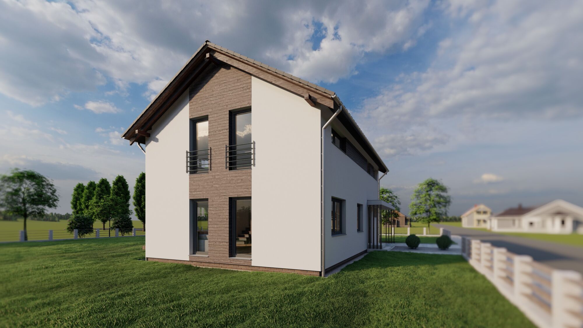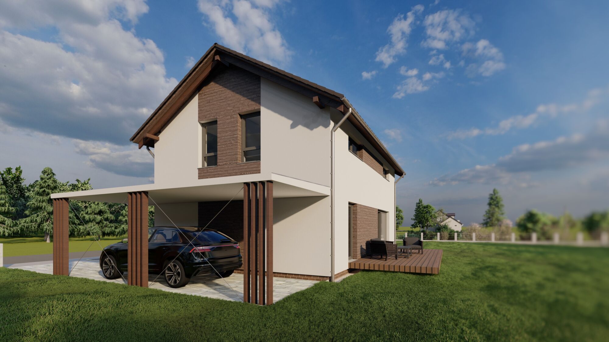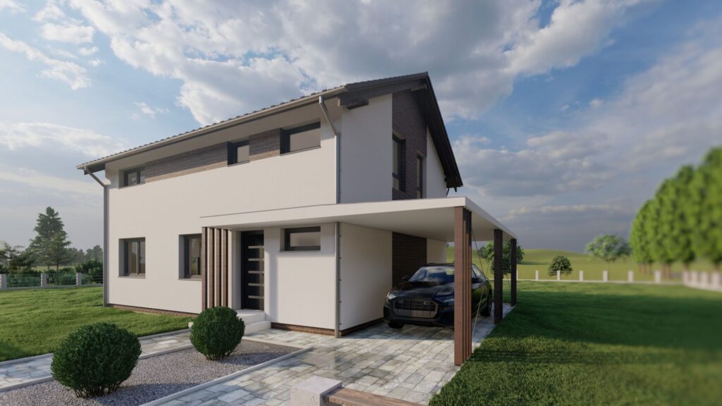Představuje jednu z rozšířených a velmi praktických variant „véčkových“ domů. Tento design nabízí větší prostor a řadu vylepšení, která ho staví mezi oblíbené volby pro větší rodiny.