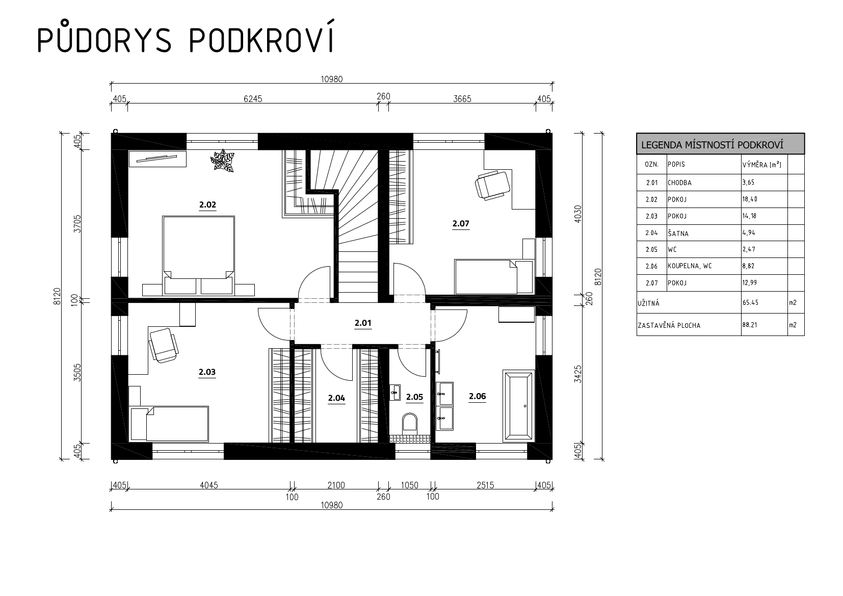 Jedním z významných prvků tohoto domu jsou zvýšené pozednice v patře, což umožňuje lepší využití podkroví. Tím pádem se toto podkroví stává plnohodnotným prostorem. Co je výjimečné je prosvětlení patra přes všechny čtyři stěny domu, což zajišťuje dostatek přirozeného světla ve všech místnostech. Projekt RD 170 V byl navržen s ohledem na potřeby větších rodin. Dispozice 5+kk poskytuje dostatek prostoru pro všechny členy rodiny. Dvě koupelny, velká šatna v patře či rozměrný obývací pokoj jsou v tomto domě naprostou samozřejmostí. S užitnou plochou 136,83 m2 a zastavěnou plochou 86,88 m2 vám tento dům nabídne komfortní bydlení a dostatek prostoru pro vaše aktivity, a to při zachování velkého místa na pozemku.