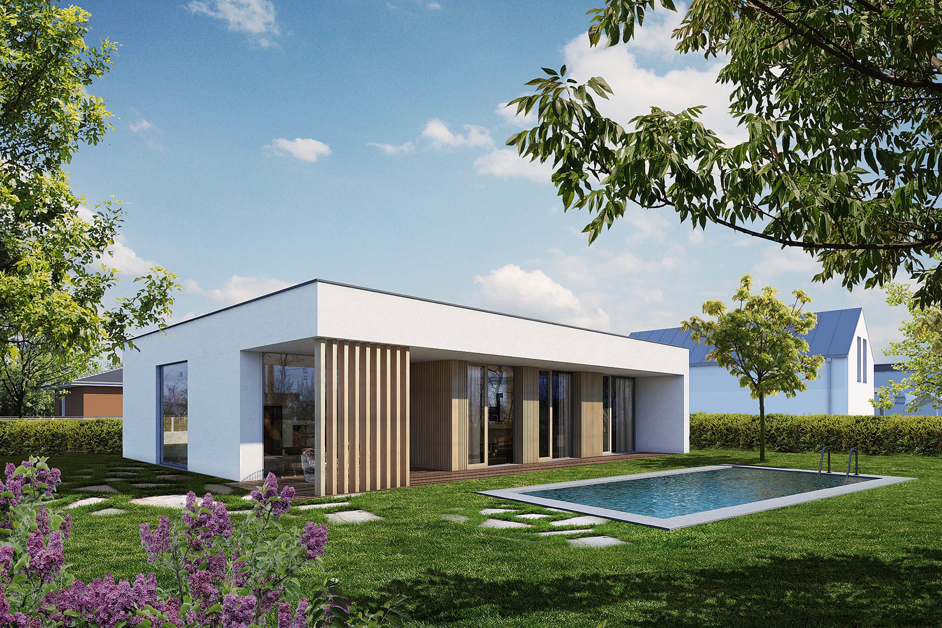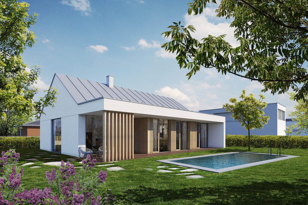 Dům ALENA, typový projekt bungalovu, představuje jednu z nejžádanějších koncepcí dispozice domu, a to ve dvou různých architektonických provedeních. Tento rodinný dům má obdélníkový půdorys a je dostupný v dvou variantách – KLASIK se sedlovou střechou a TREND se střechou plochou, aby vyhověl různým preferencím zákazníků.