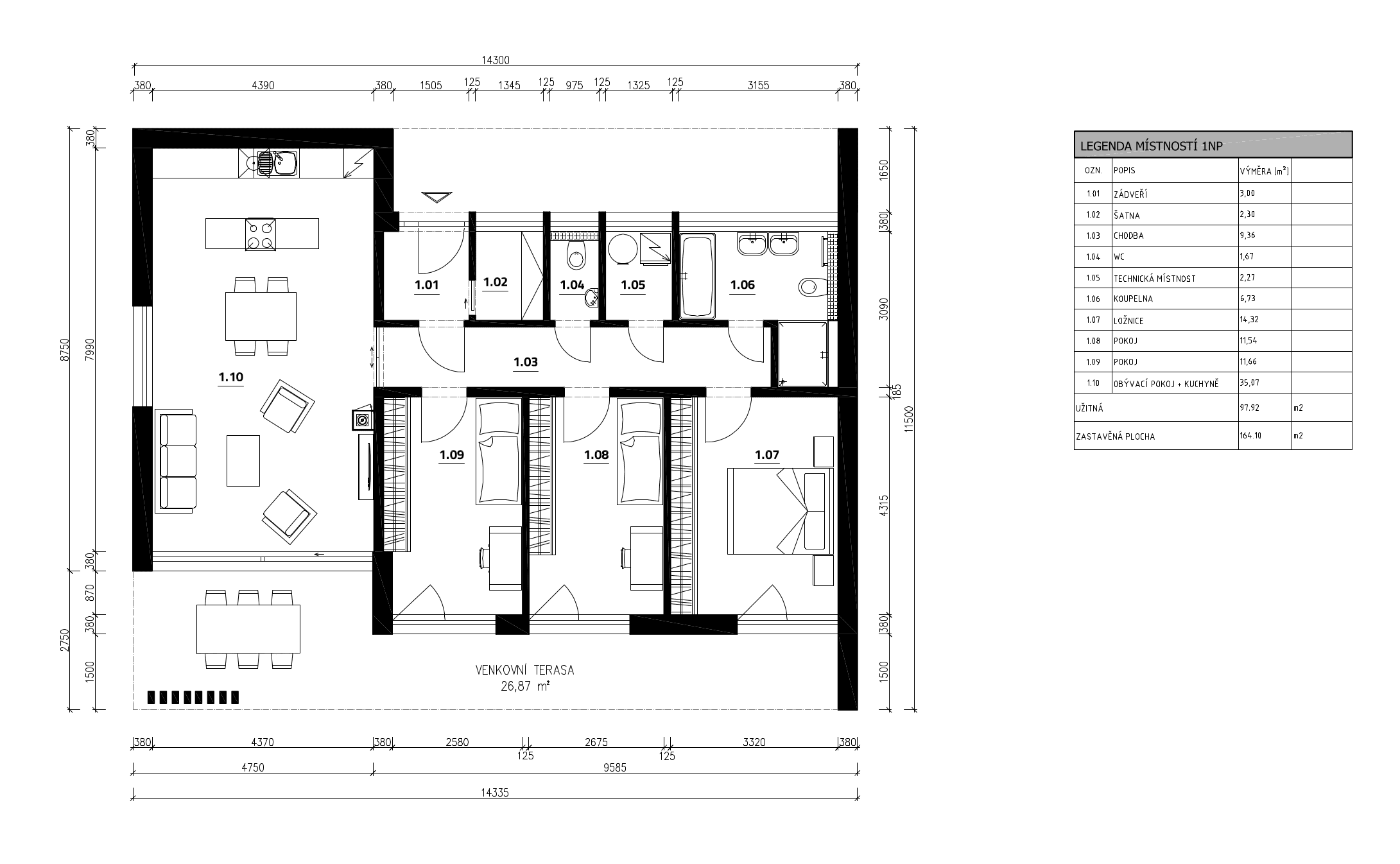- Zastavěná plocha 164.1 m²